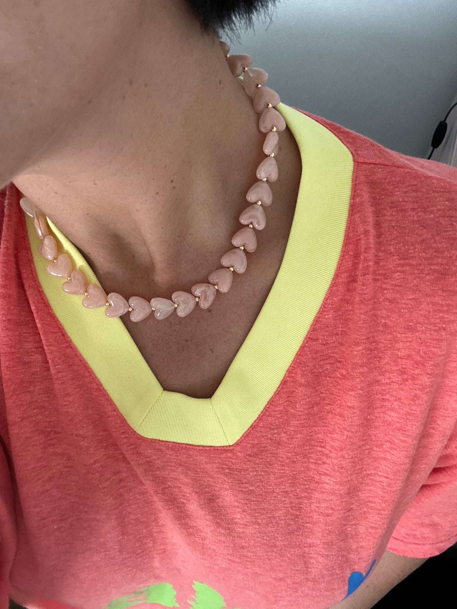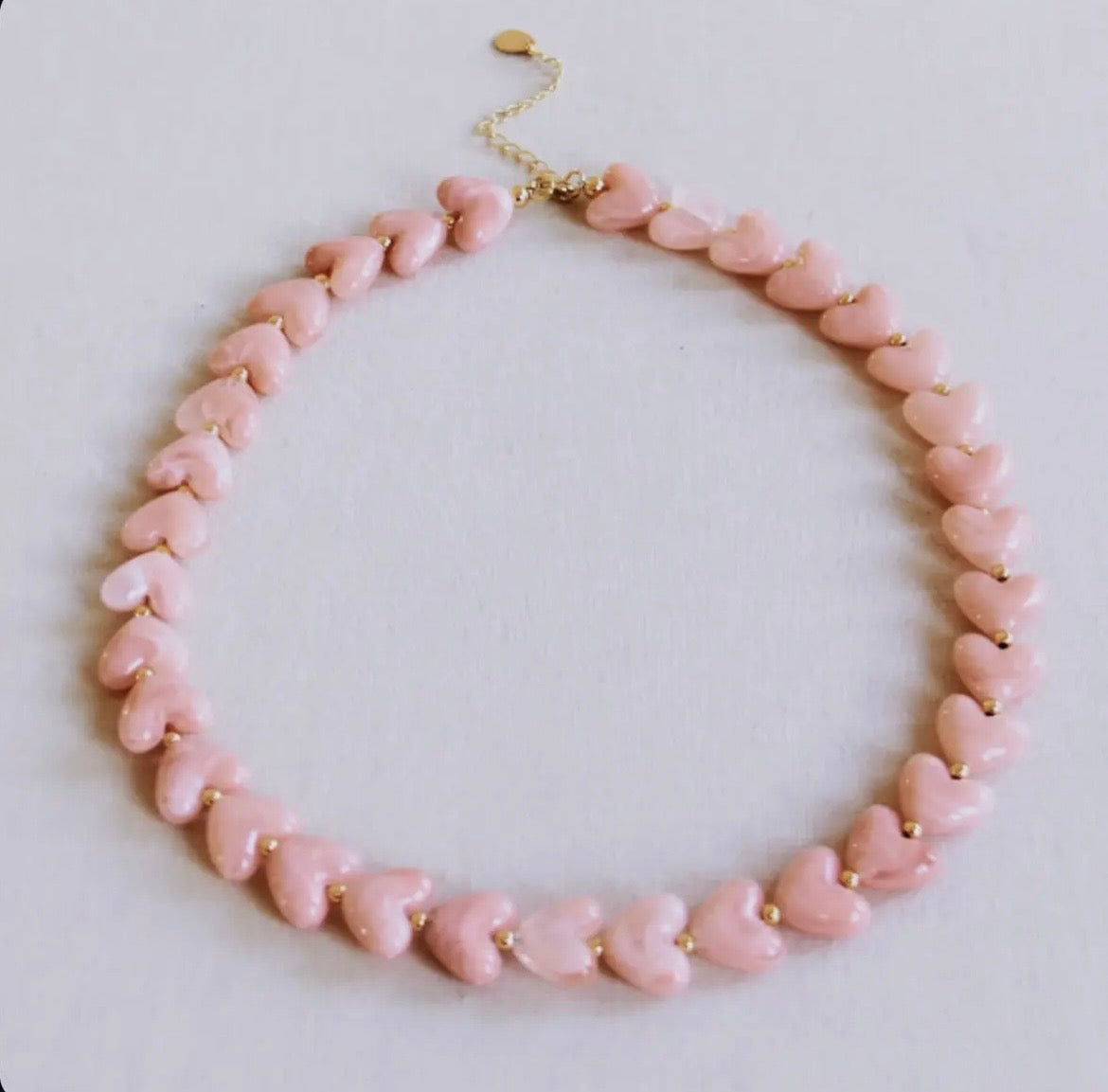 Small Heart Bead Necklace - Light Pink