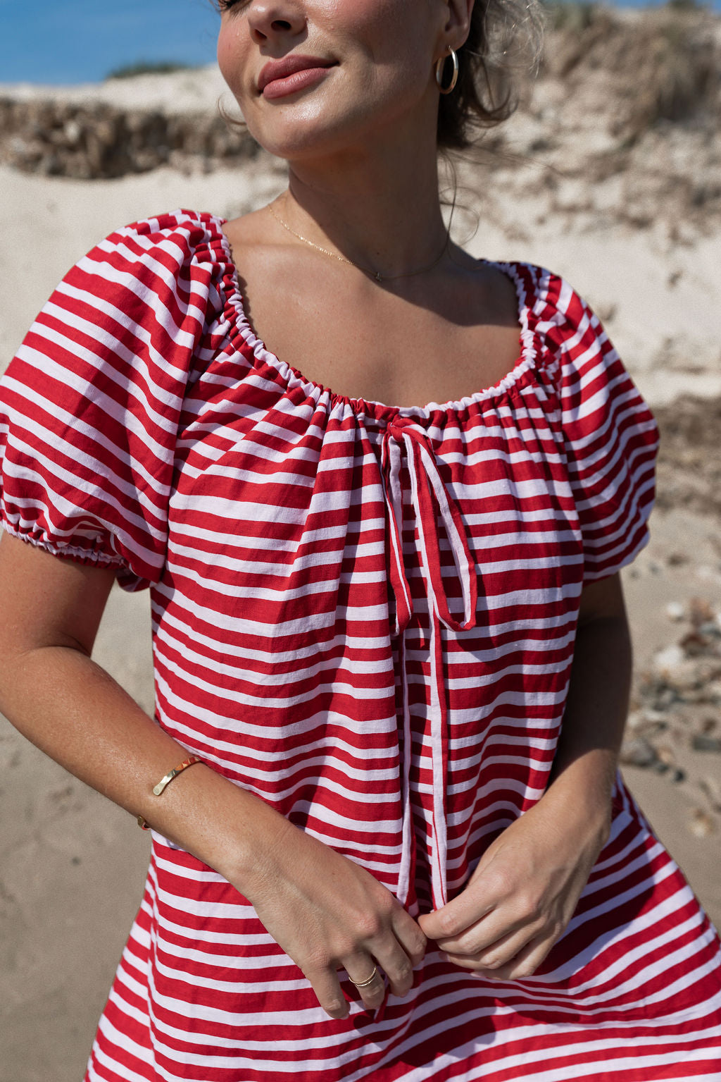 The Betty Dress, in our exclusive hand-painted stripe print by SOAN Print House