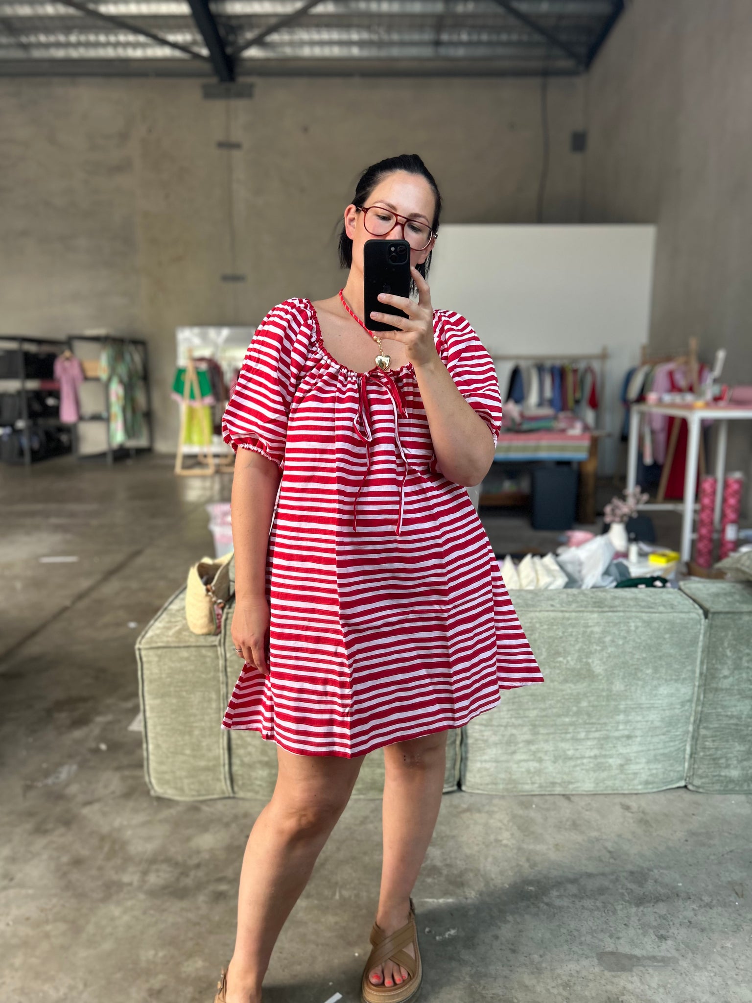 • Load image into Gallery viewer, The Betty Dress | Striped Red + Pink