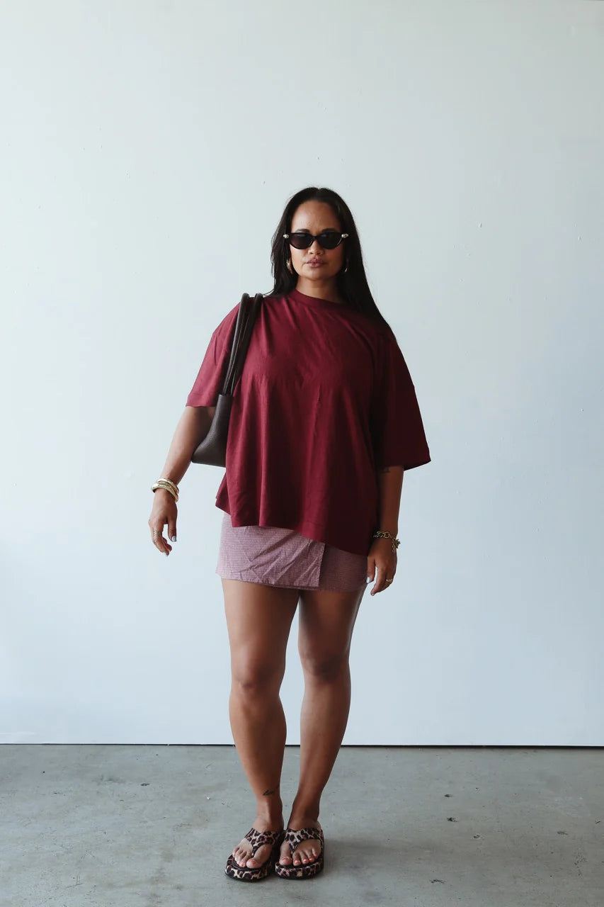 By Billie ATHLETIC HEMP/COTTON TEE - BURGUNDY