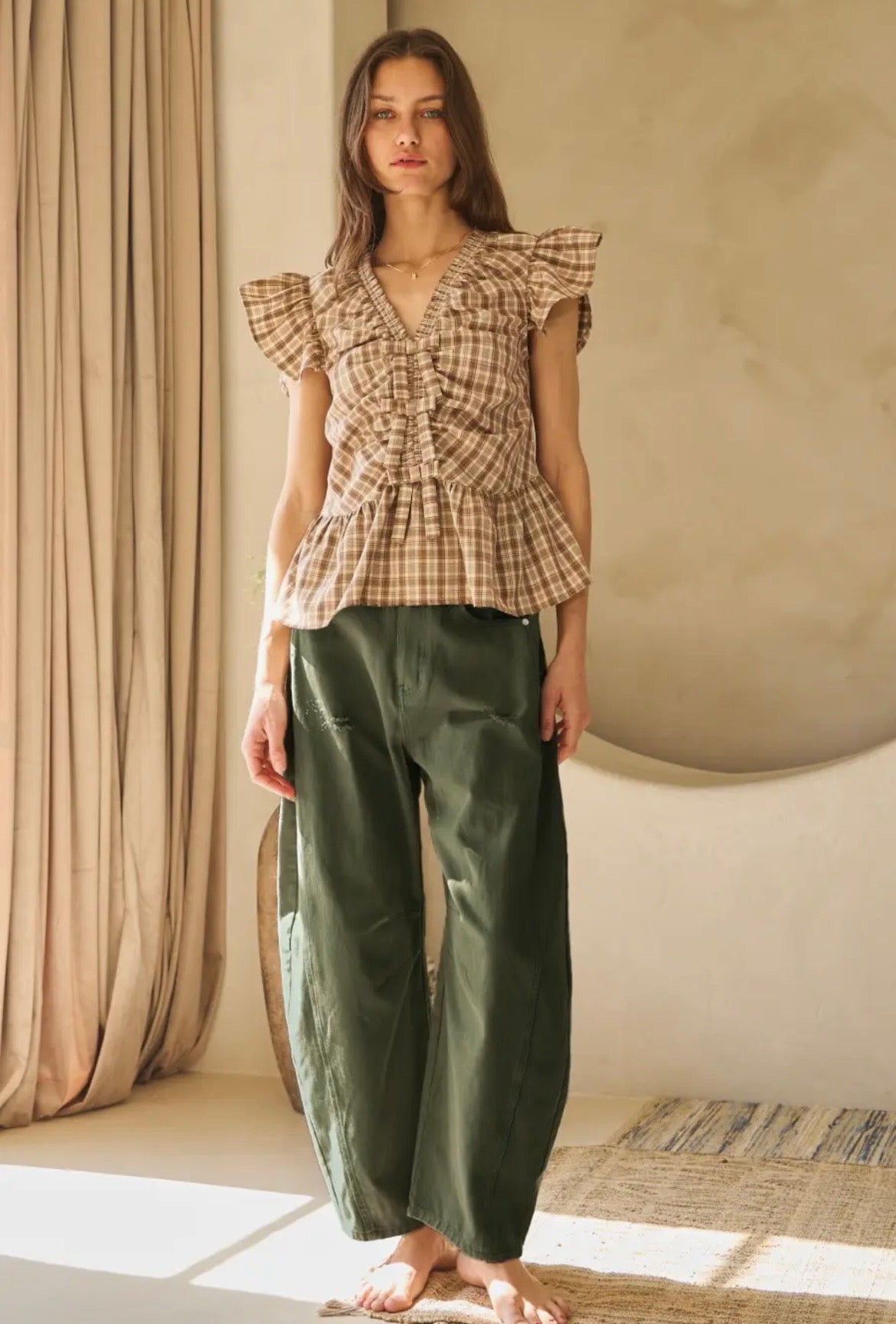 The Acid Wash Olive Barrel Pants